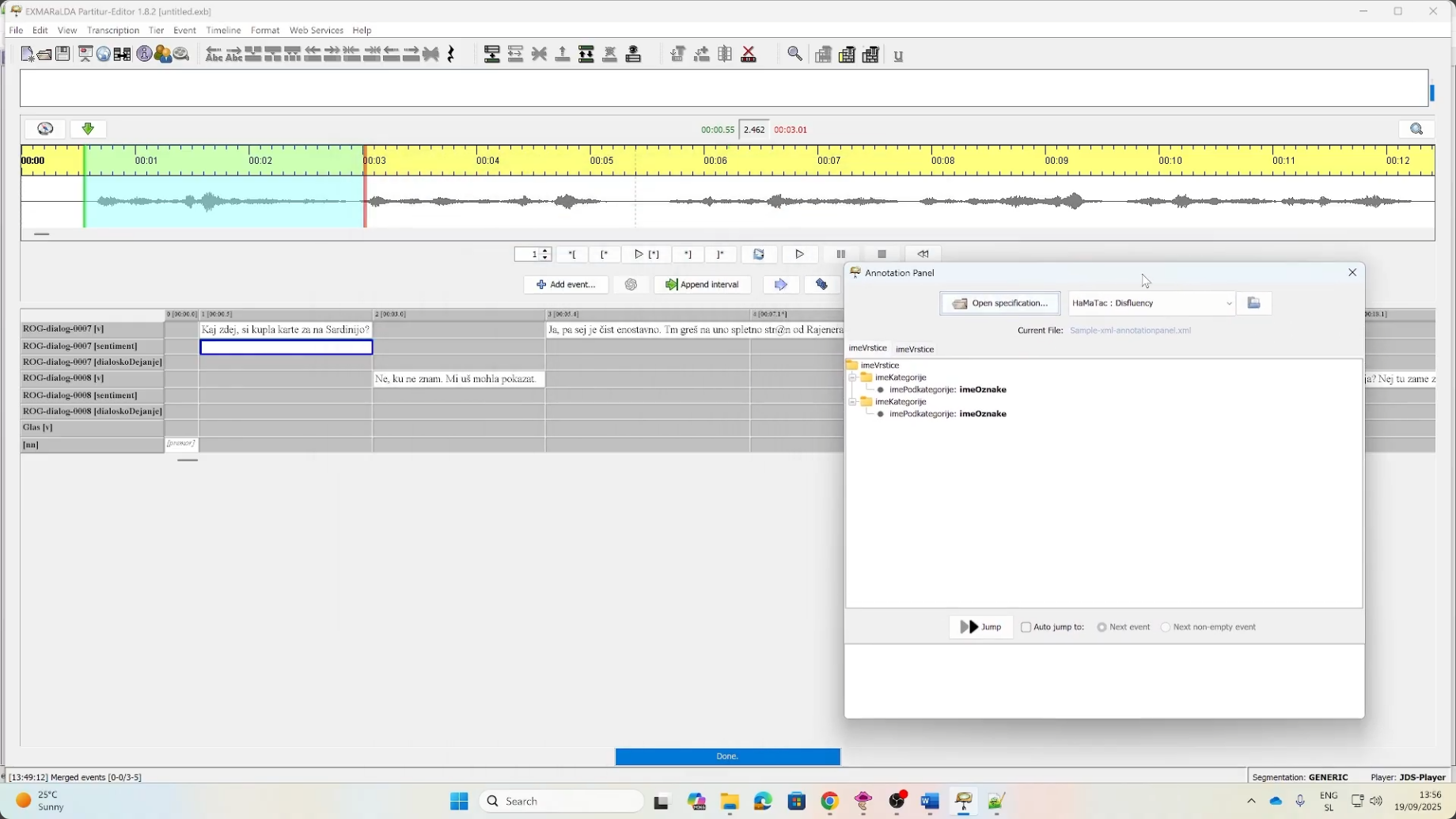 - Poznan format v slovenskih govornih virih, uvozljiv v EXMARaLDO, Praat in ELAN.